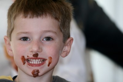 Brayden, with his darling, angelic face…started this whole icing-as-face-decoration-war-paint idea. So of course, the other kids followed suit.