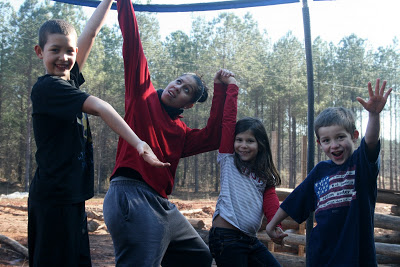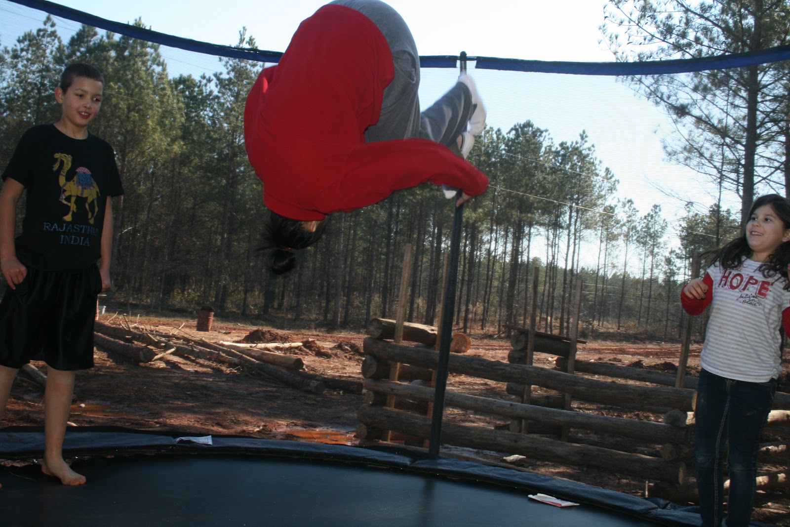We had lots and lots of fun while Jasmine was here. With her loudness and wildness, there is also tremendous kindness and compassion. She took time to visit with all the kids..she actually knows all of their names! (wow!) She took the dirt board spill like a champ and she is now a professional trampoline-ing jumper.