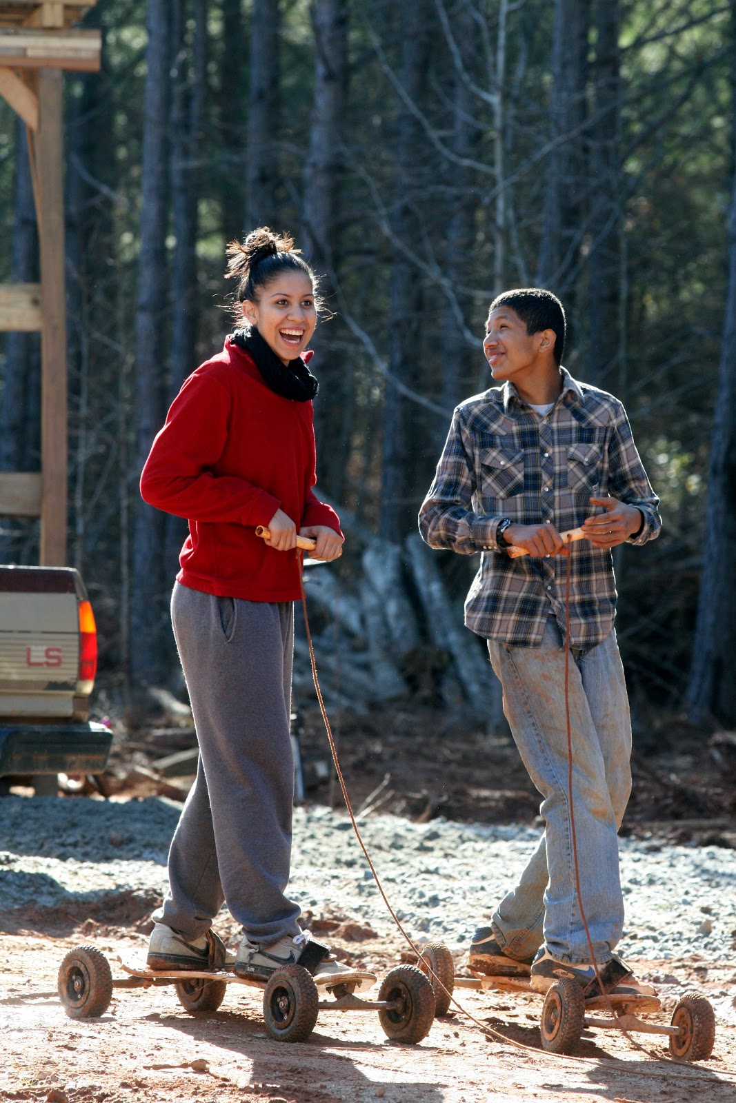Until today she had never jumped on a trampoline, ridden on a dirt board, or seen as much dirt as we have on our farm.