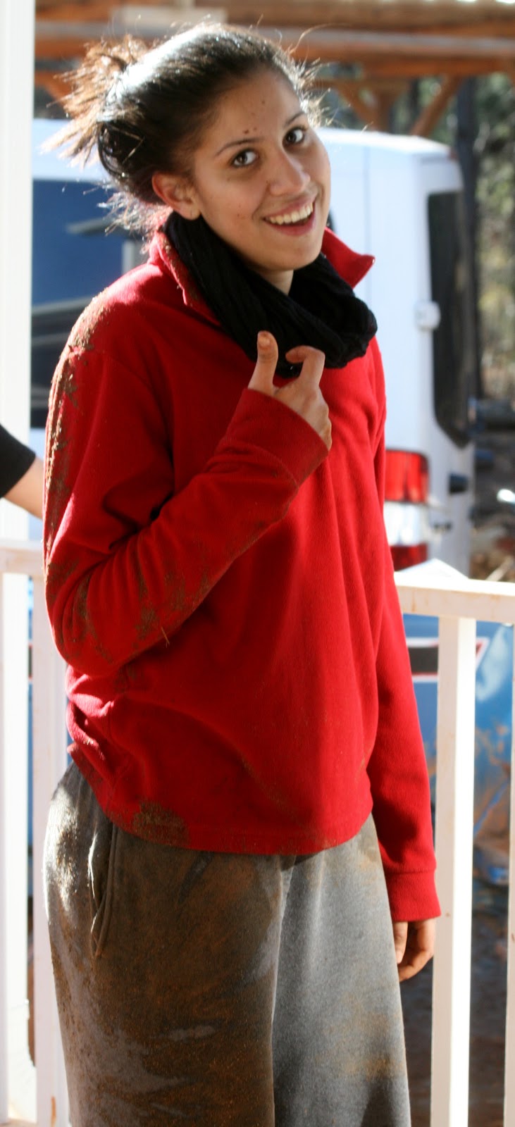 | Looking a little nervous…there is more of that horrible mud! bleck. |