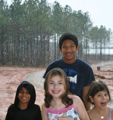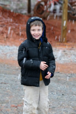 They woke up, saw it was snowing and thought “oh dear! it may quit snowing soon!” Then the kid that woke up first and was dressed and ready to go outside egged them on. You know…”come ON guys, you don’t have time to get coats and shoes, let’s GO!!!”